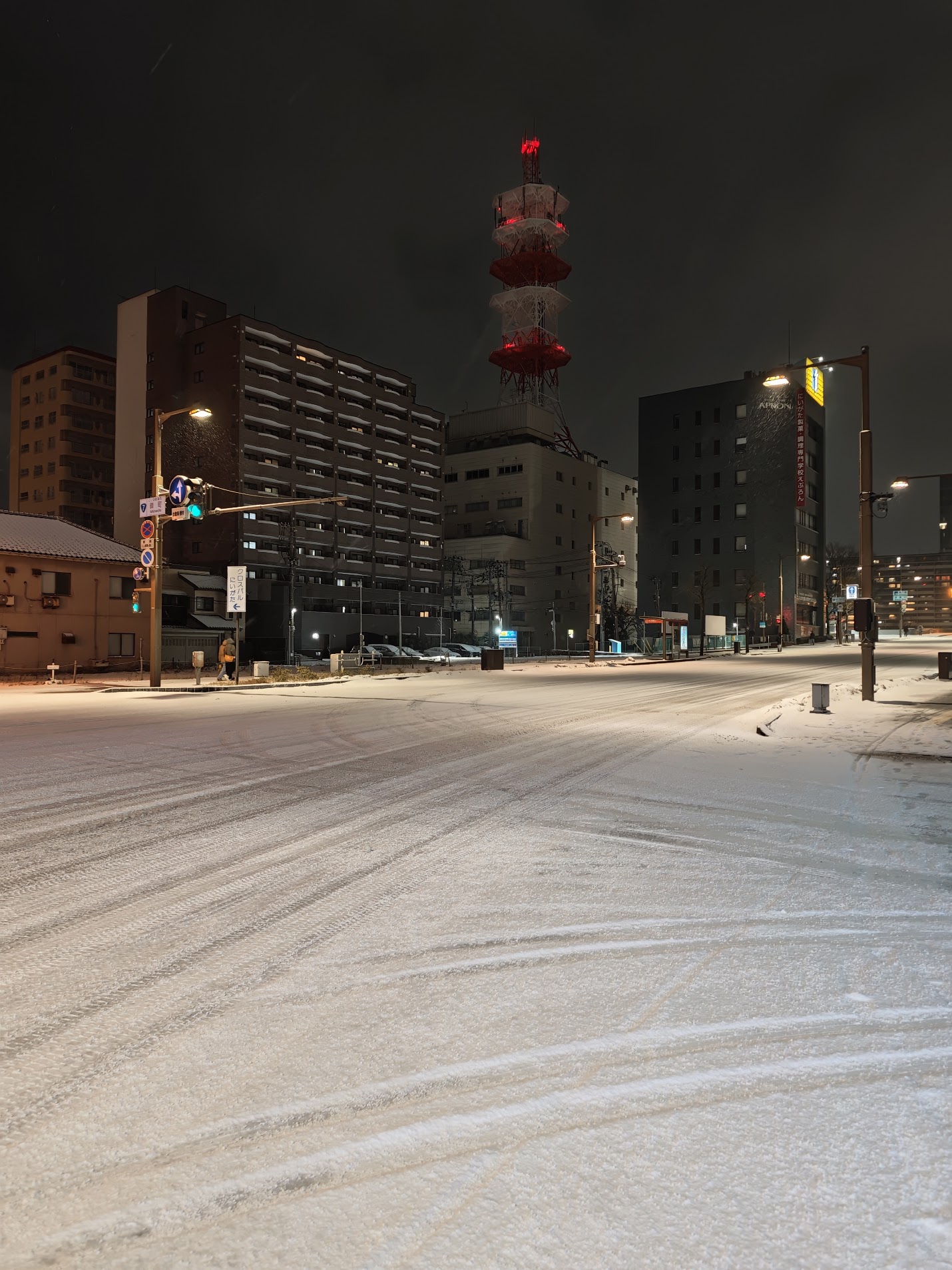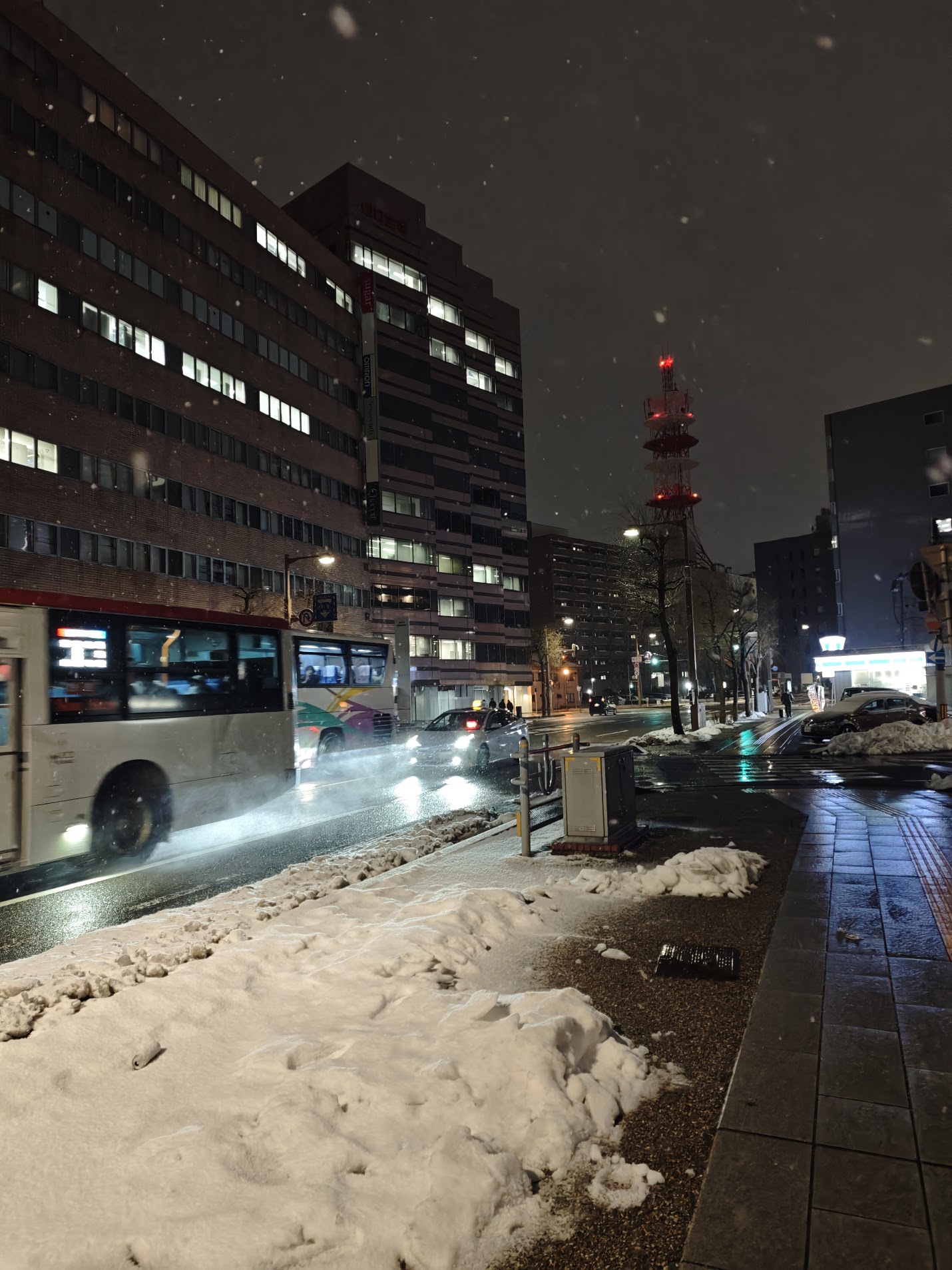 晚上城区的雪也积起来了,终于有种北海道城市的感觉了x