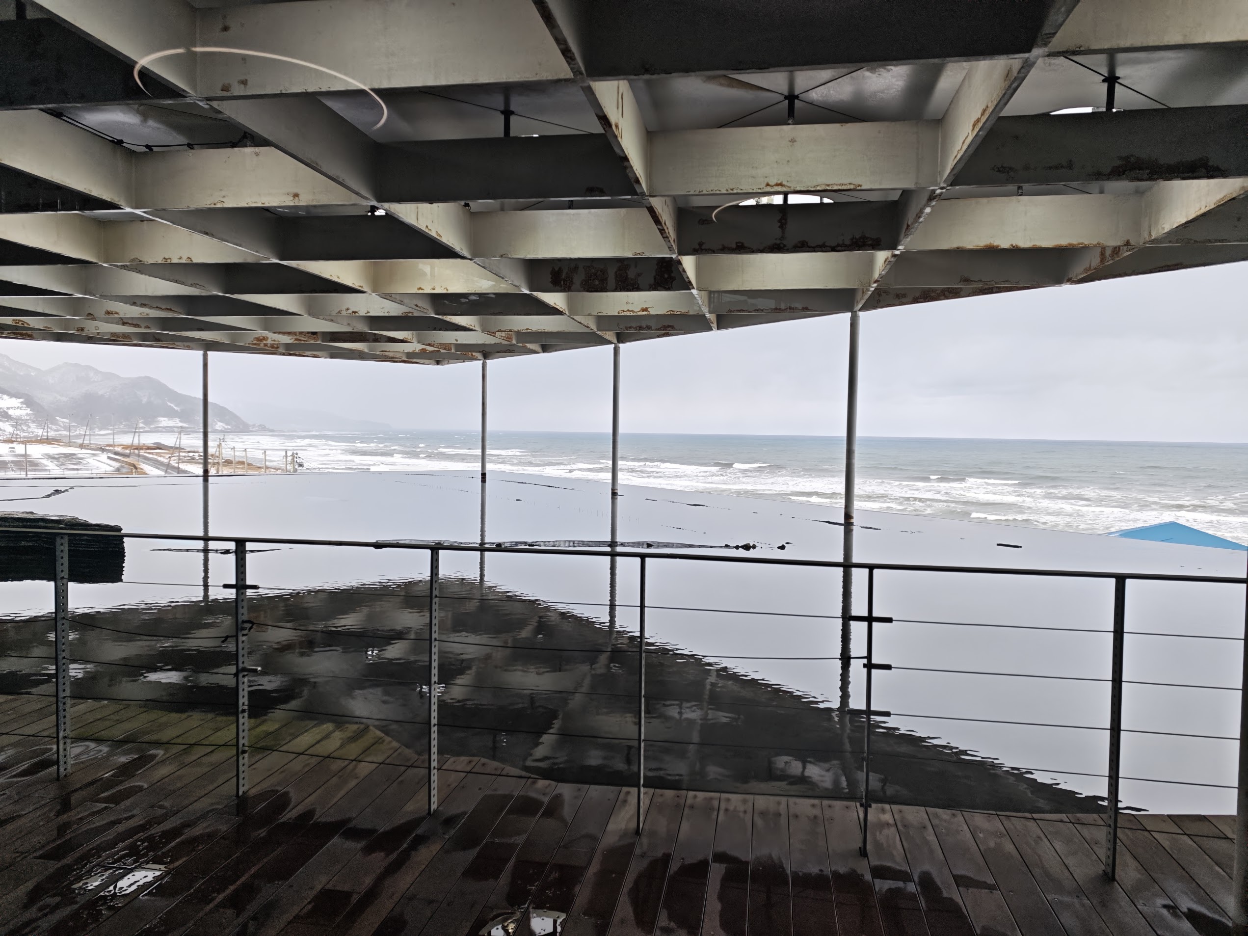 到了海边反而不太多积雪了,没有看到预想中的雪中的海岸线,这点还是不如冰见线(x