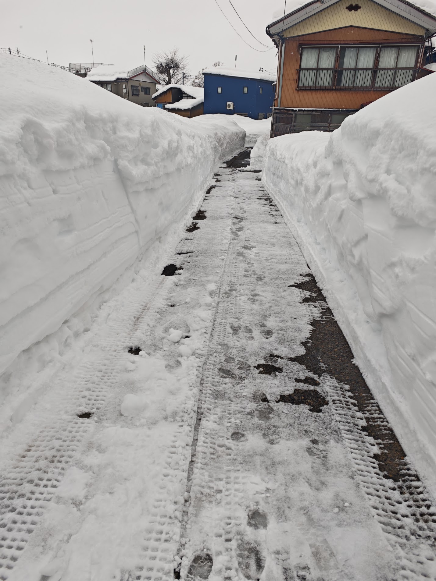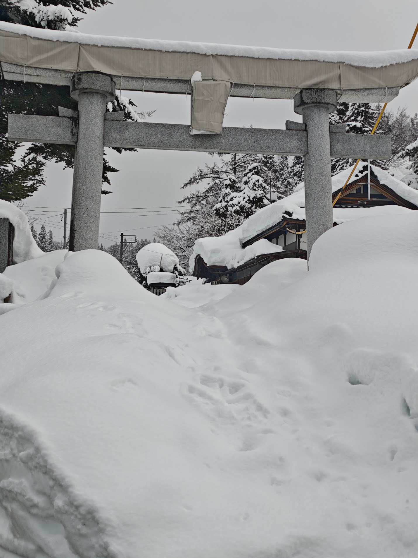 很多建筑快被雪淹没了,包括这里的大神社。当地的居民都在除雪,尤其是屋顶上的雪,因为马上下一场大雪就要来了,屋顶可能会不堪重负。