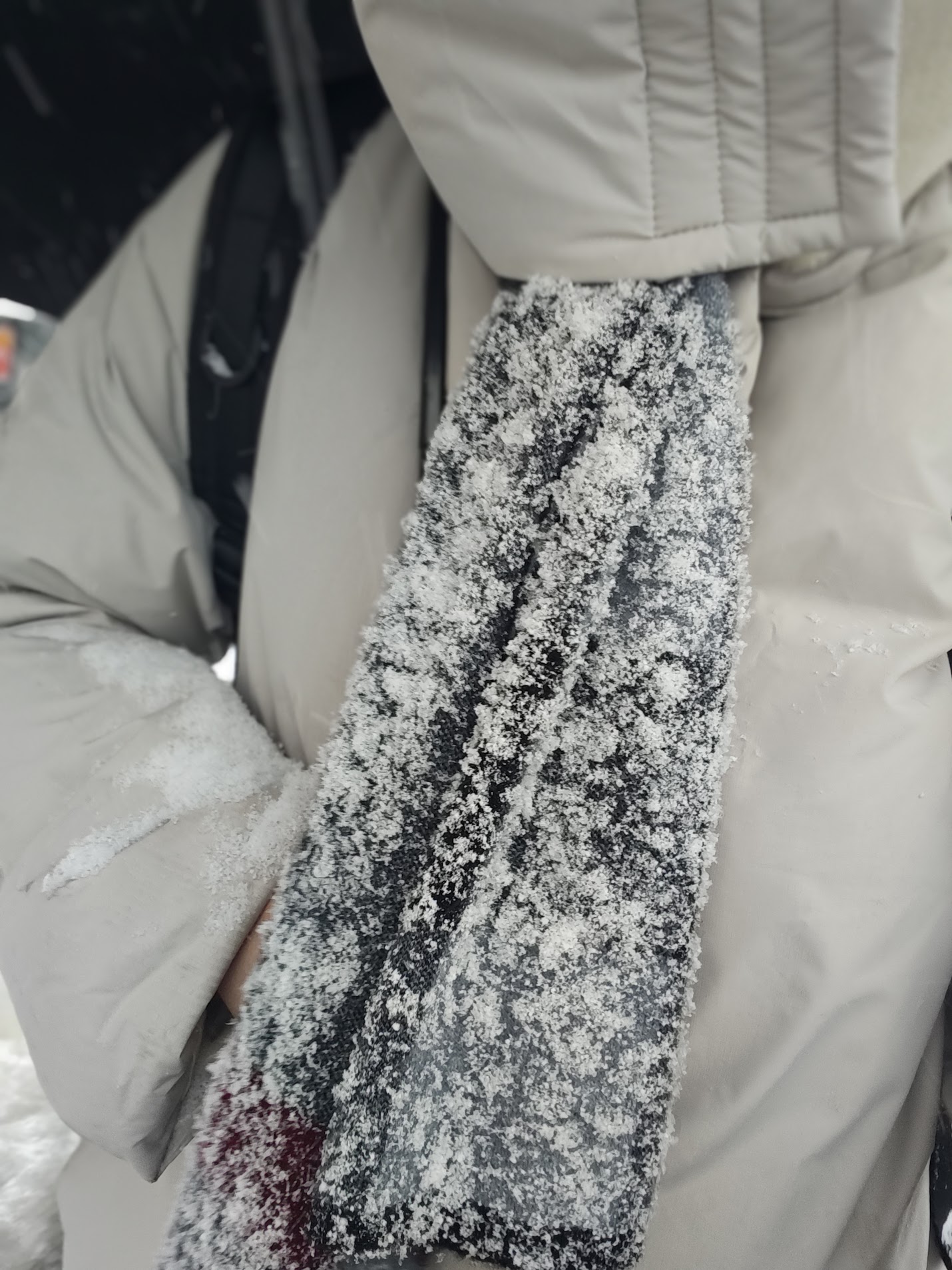下山发现雪更大了……回去的600米实在是难走。即使我打着伞,走到一半已经身上全是雪了。