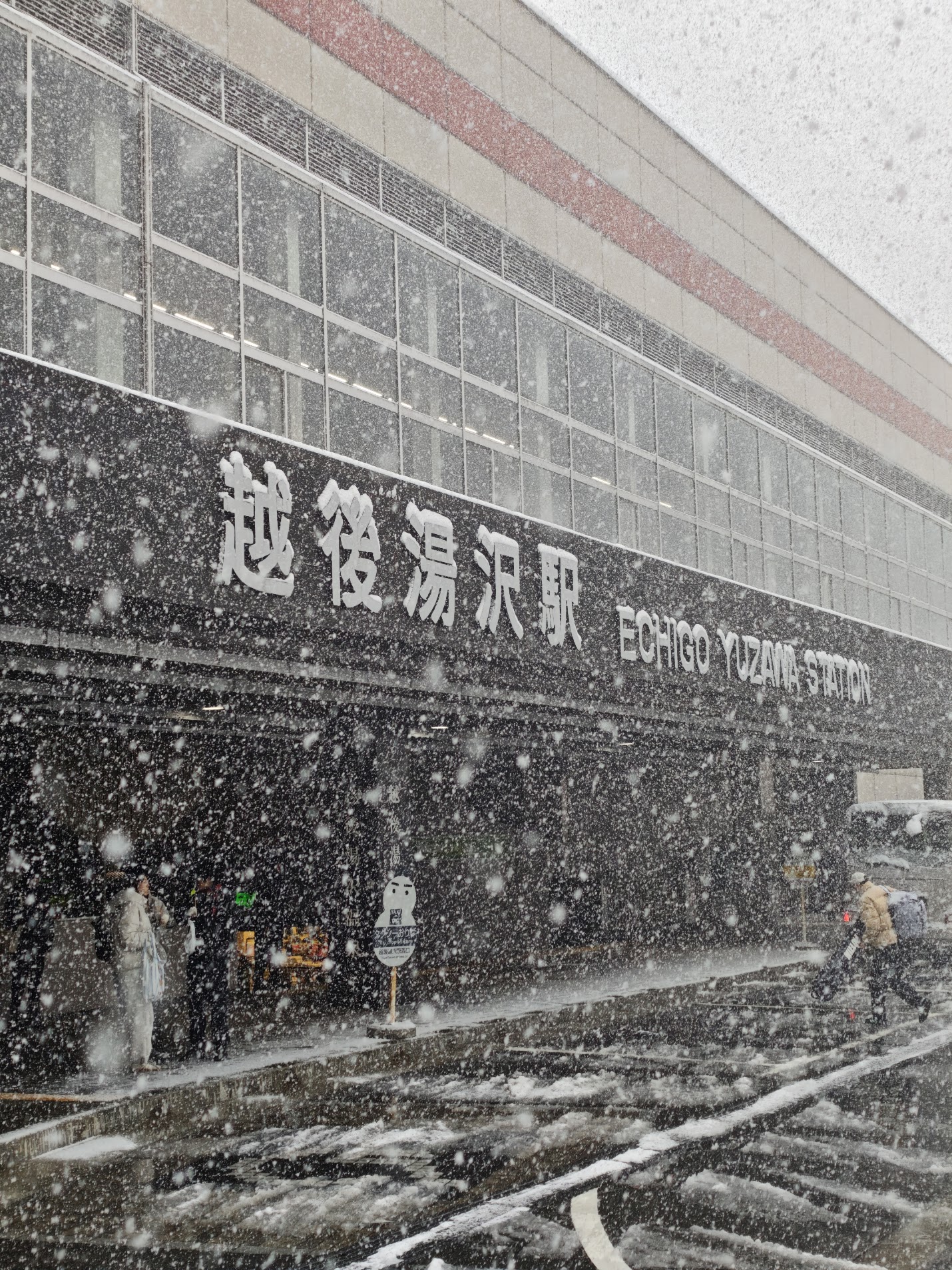 上越新干线到达越后汤泽之前,无论是从新潟方向还是从东京方向来,都会经过一个隧道。这次从新潟到达越后汤泽的时候,出隧道就看到了漫天的大雪。
