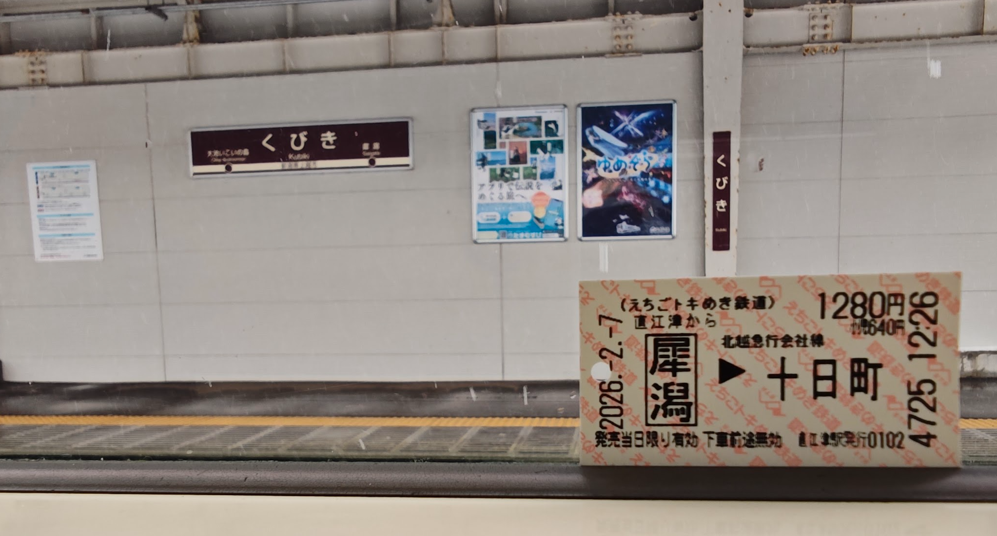 离开直江津,乘坐北越急行ほくほく線(北北线),你看这个名字也很可爱,前往北陆积雪最深的小镇——十日町。当天十日町的气象数据显示,积雪深度是225厘米。